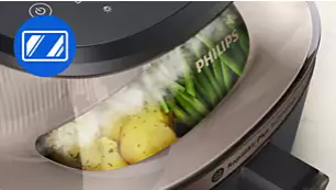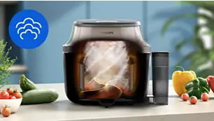 Crispy on the outside, Juicy on the inside – The power of Steamfry Now you can have the best of both worlds. Airfry and steam at the same time for a golden crunch on the outside and juicy tenderness inside. Perfect for golden cinnamon rolls, crunchy-baked breads, succulent chicken, and next-level veggies. No more burning or undercooking. | ![]() |