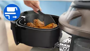 EasySlide Rail designed for Safer, Easier Basket Pullout Whether you only have one hand free or need quick access while cooking, our patented EasySlide Rail technology******* makes checking, shaking, or adding ingredients easier than ever. Designed for ultimate convenience and safety, the sliding mechanism glides smoothly and securely, ensuring the basket stays upright and stable on its tracks at all times. Compared to placing the hot basket on your countertops, it will reduce the risk of burns, creating a safer and more seamless cooking experience. | ![]() |