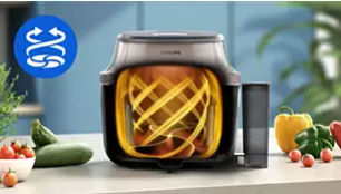 Cook faster, always with perfect results No more burning or undercooking. RapidAir Plus Technology with its unique star-shaped design allows hot air to circulate faster around and through the ingredients***, evenly cooked every time with up to 90% less fat.* | ![]() |