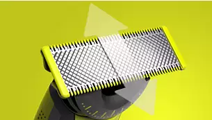 Уникална технология на OneBlade Philips OneBlade разполага с революционна технология, предназначена за оформяне на брадата. Тя може да бръсне косми с всякаква дължина. Нейната двойна система за защита – плъзгащо се покритие, съчетано със заоблени накрайници – прави бръсненето по-лесно и комфортно. В същото време нейната технология за бръснене разполага с бързо движещи се ножчета (12 000 пъти в минута), така че е ефективна – дори при дълги косми. | ![]() |