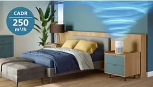 Removes pollutants in under 12 minutes Faster purification in a compact, elegant design (1). With powerful filtration of 250 m3/h (CADR), it can easily handle spaces of up to 65m2 (2) and can clean a room of 20m2 in less than 12minutes (3). | ![]() |