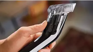 Щадящи кожата гребени и ножчета за гладко подстригване Гладко подстригване, което щади кожата. Ножчетата и гребените на тази машинка за подстригване са със заоблени върхове, което помага да се избегне раздразнението и дърпането на косата, докато подстригвате. | ![]() |