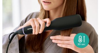Тази преса за изправяне е с бързо загряване, готова за ползване след 30 секунди.