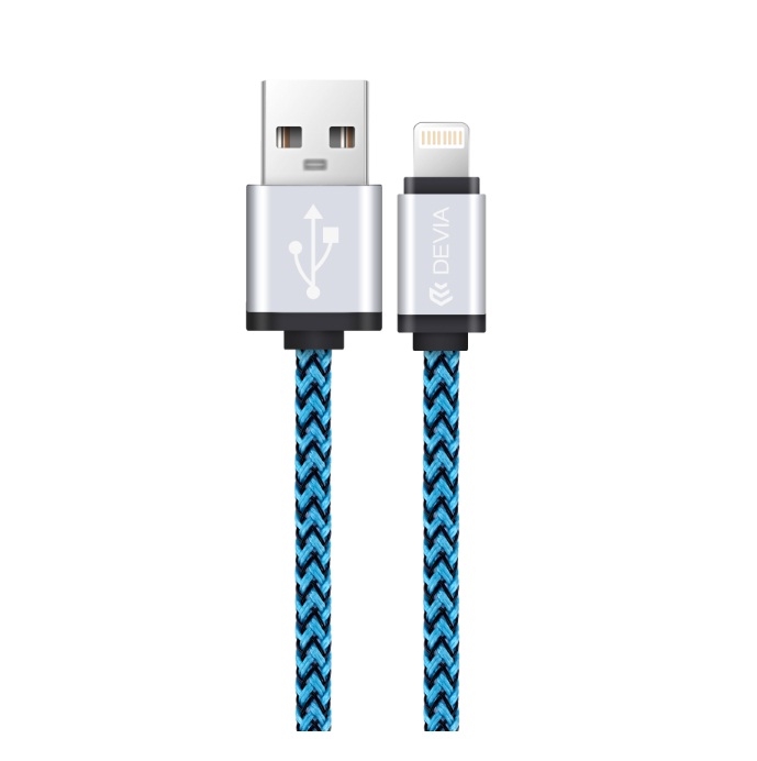 Плетен lightning кабел (120 см.) за iPhone, iPad и iPod с Lightning вход - Devia Jazz Lightning Data Cable 1.2m. (син)