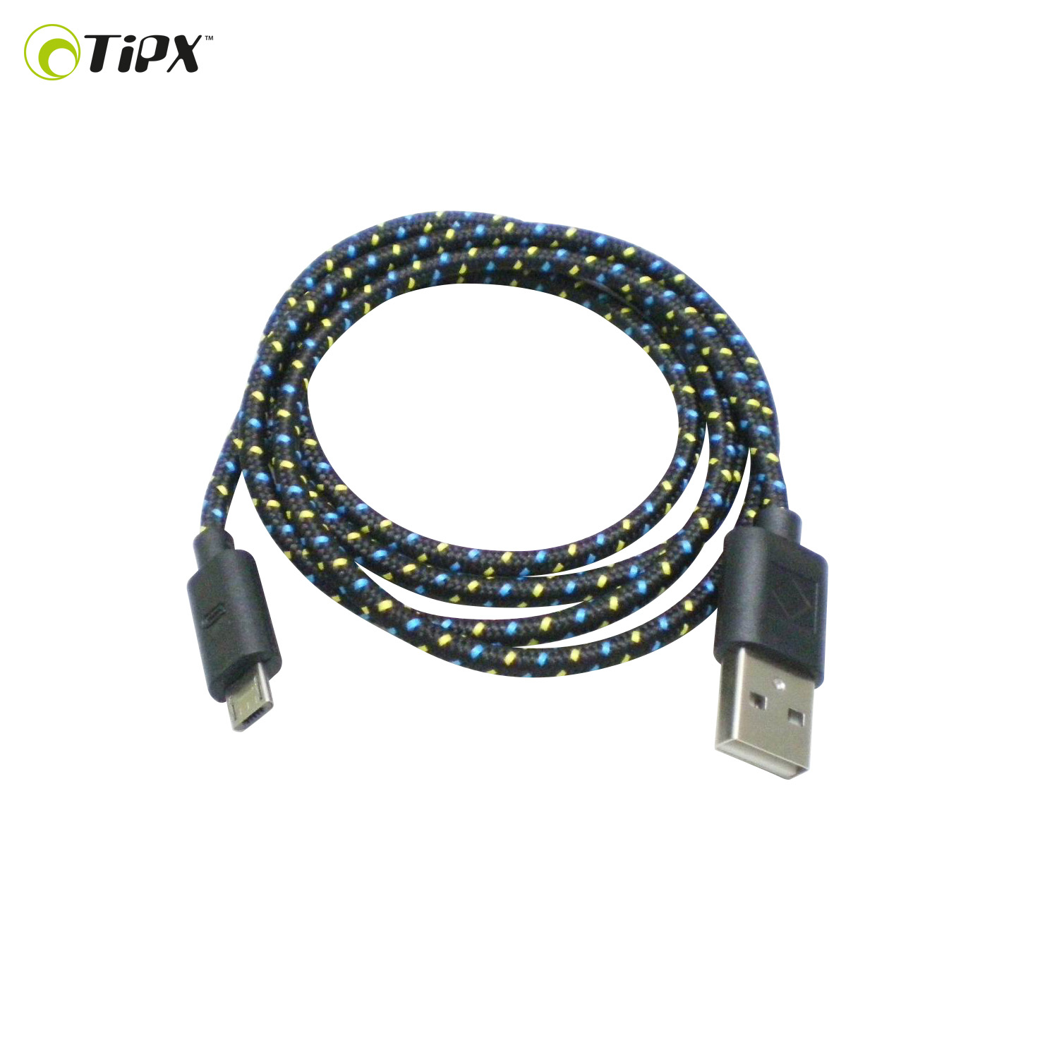 Кабелът е с плетена (текстилна) обвивка, което го прави изключително здрав и труден за заплитане