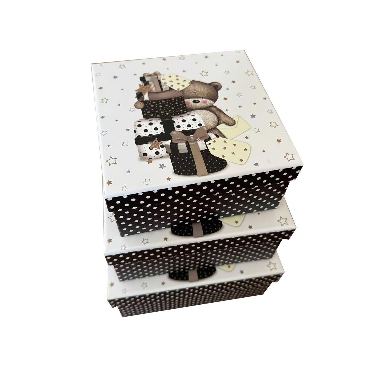 Подаръчна кутия, мечета, черно и бяло, 3 броя
