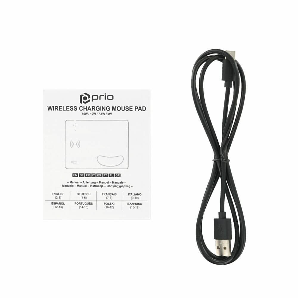 Подложка за мишка и поставка (пад) за безжично зареждане на Qi съвместими устройства - Prio Fast Wireless Charging Mouse Pad 15W (черен)