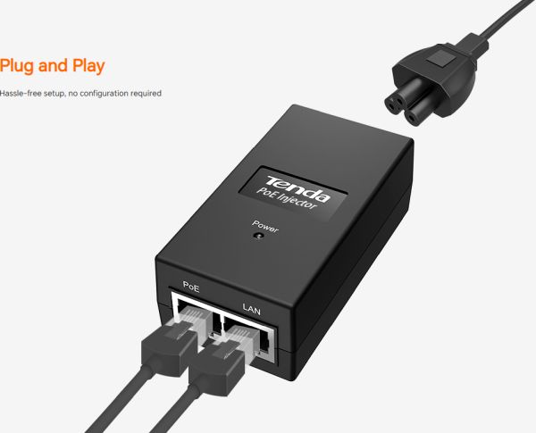 PoE Инжектор 15W. Интерфейси: 1*10/100 Base-TX Ethernet ports(Data/PoE) + 1*10/100 Base-TX Ethernet ports(Data). Скорост на връзката 100 Mbps. Мрежови стандарт IEEE802.3, IEEE802.3u; LED индикация за PoE статус. Захранване с кабел в комплекта. Входящо напрежение 100-240V AC, 48V DC. Размери 84.5mm*44mm*29.8 mm. Работна температура 0℃~45℃.