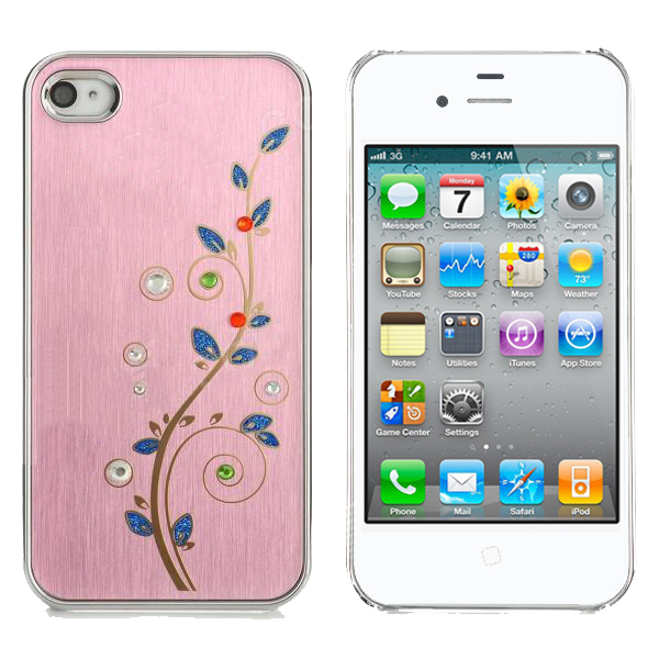 $$$Поликарбонатов кейс с алуминиево покритие за iPhone 4/4S - Newtons Flower Rhinestone Case (розов)$$$