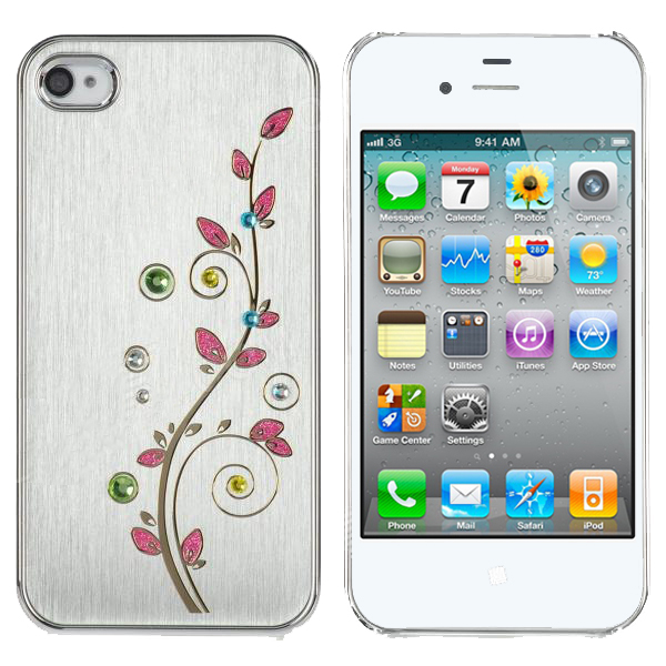 Поликарбонатов кейс с алуминиево покритие за iPhone 4/4S - Newtons Flower Rhinestone Case (сребрист)