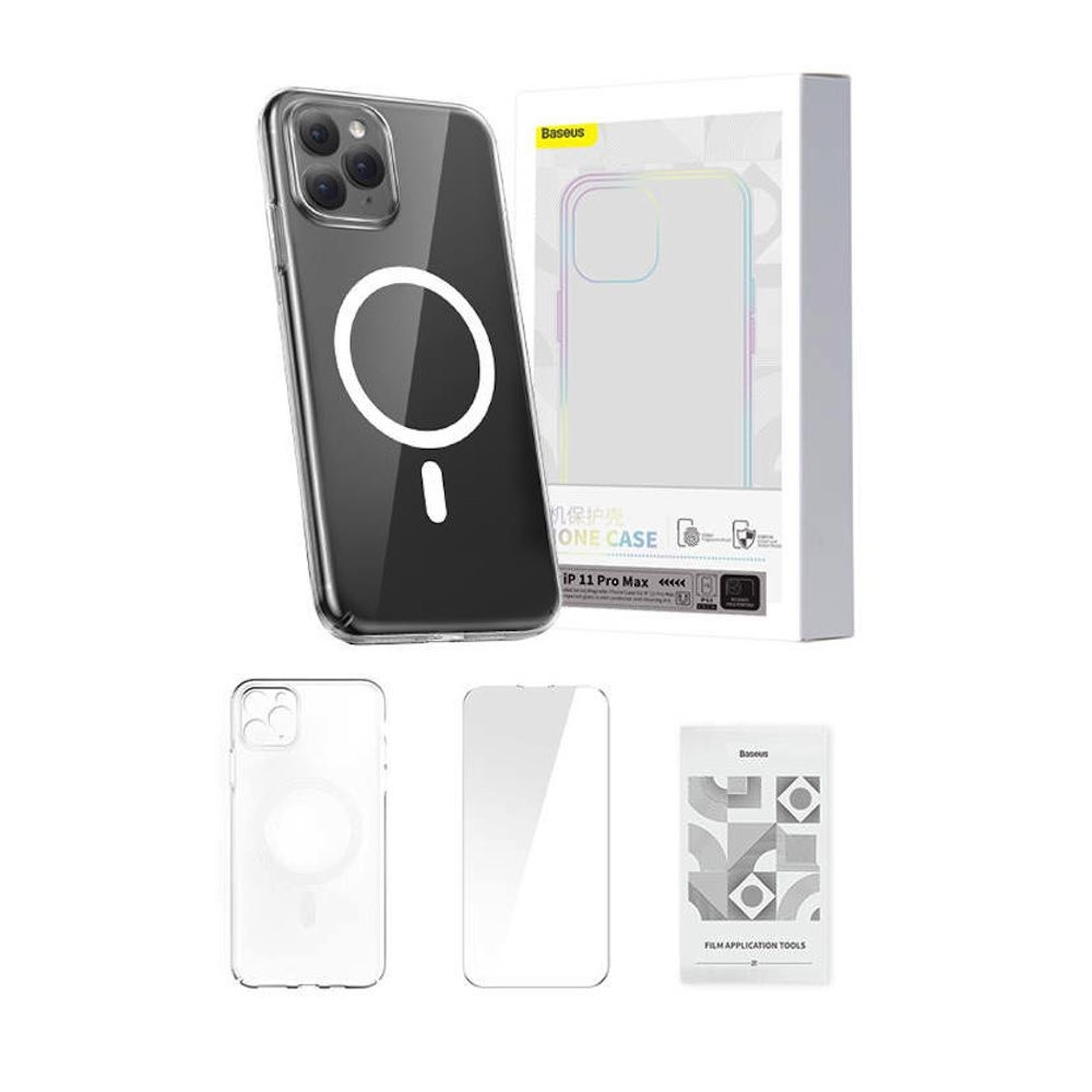 Поликарбонатов кейс с MagSafe и стъклено защитно покритие за дисплея за iPhone 11 Pro Max - Baseus Crystal Magnetic Case Set (ARSJ010202) (прозрачен)