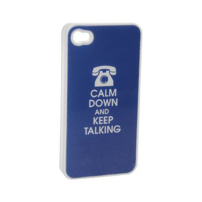 Поликарбонатов кейс за iPhone 4/4S - Calm Down & Keep Talking (тъмносин)
