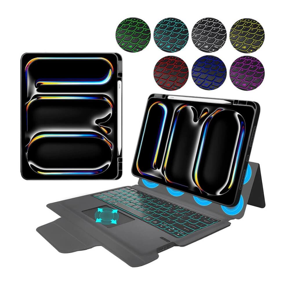 Полиуретанов калъф, клавиатура, тракпад и поставка за iPad Pro 11 (2024) - Techsuit KeyTab Pro RGB Wireless Touchpad Keyboard Case (черен)