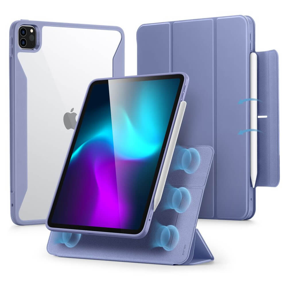 Полиуретанов калъф с отделящ се кейс и поставка за iPad Air 13 (2025), iPad Air 13 (2024), iPad Pro 12.9 M2 (2022), iPad Pro 12.9 M1 (2021), iPad Pro 12.9 (2020) - ESR Rebound Hybrid Case 360 (лилав-прозрачен)