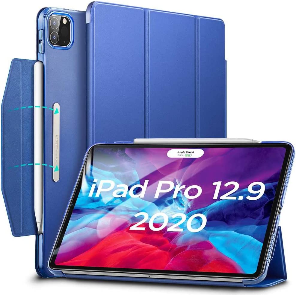 Полиуретанов калъф с поставка и отделение за Apple Pencil 2 за iPad Pro 12.9 M2 (2022), iPad Pro 12.9 M1 (2021), iPad Pro 12.9 (2020), iPad Pro 12.9 (2018) - ESR Ascend Trifold Case (син)