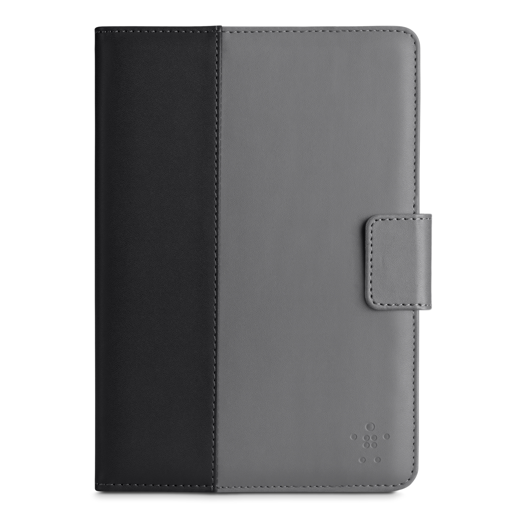 Външната част на този Belkin калъф е направена от сива изкуствена кожа с черна ивица