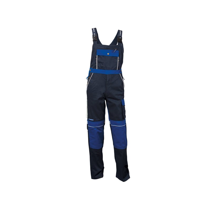 • Работен полугащеризон с функционални джобове, подсилени колена с джоб за наколенки и регулируеми презрамки.