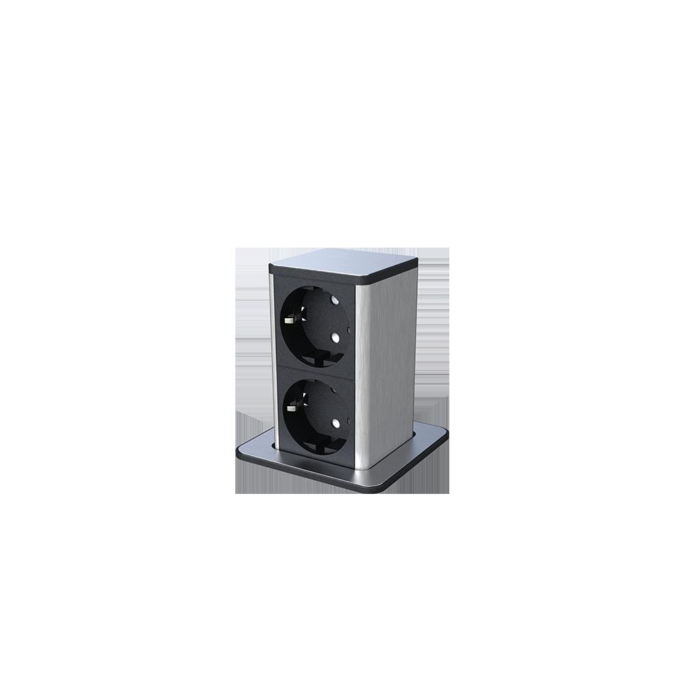 POP UP 2хКОНТАКТ ШУКО С КАБЕЛ 2М, ЧЕРЕН/ИНОКС