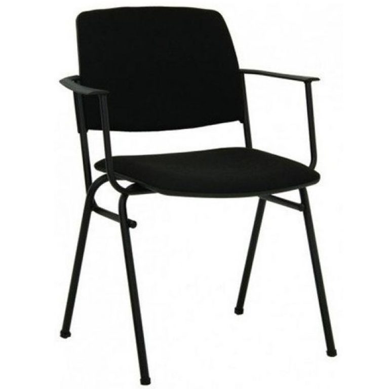 Посетителски стол Isit Arm Black C, дамаска, черна метална база, черен