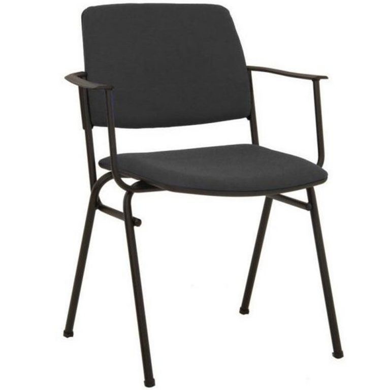 Посетителски стол Isit Arm Black C, дамаска, черна метална база, сив
