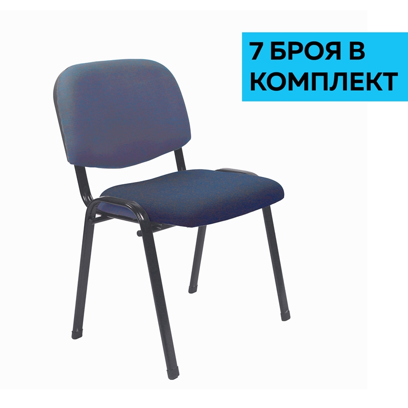 Посетителски стол Iso Iron Black, дамаска, син, 7 броя в комплект