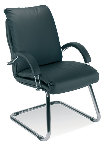 Посетителски стол Nadir Steel CF/LB V, еко кожа, метална база хром, фиксирани подлакътници, черен