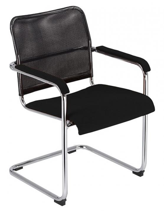 Посетителски стол Rumba Net, дамаска и мрежа, база хром, фиксирани подлакътници, черен