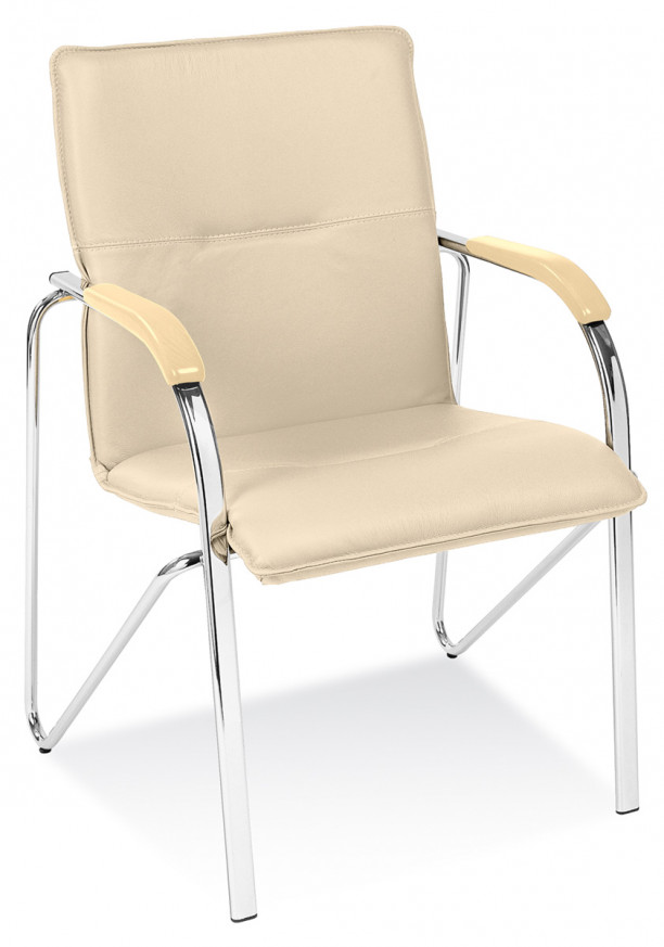 Посетителски стол Samba еко кожа, база хром, фиксирани подлакътници, бежов