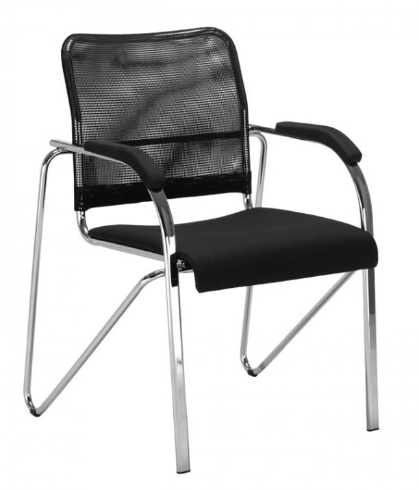 Посетителски стол Samba Net, дамаска и мрежа, база хром, фиксирани подлакътници, черен