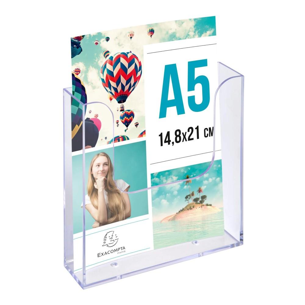 Поставка за брошури EXACOMPTA, за стена, А5, 40x160x165 мм, вертикална, кристална, 1 отделение