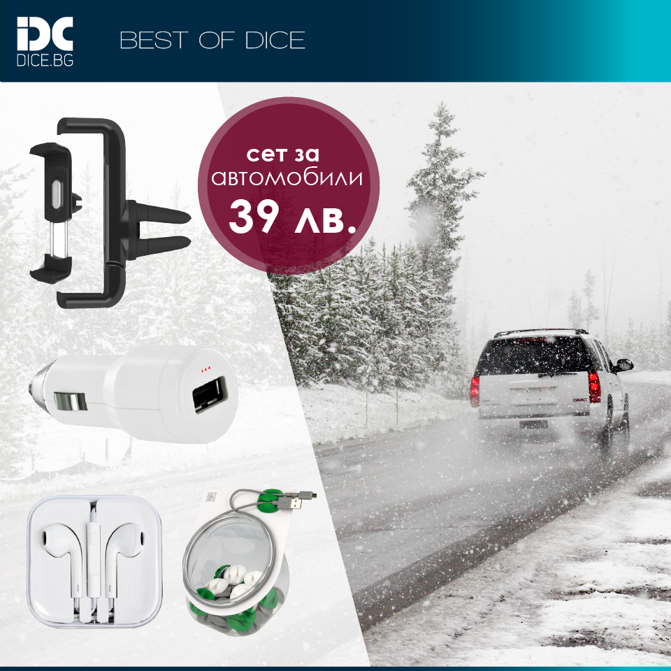 Подаръчен комплект за подходящ за хора, които шофират доста: качествена поставка за кола, сертифицирано зарядно за кола, слушалки с микрофон и органайзер за кабели