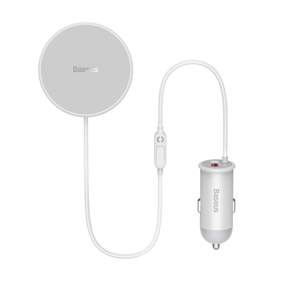Поставка за радиатора на кола с безжично зареждане и зарядно за кола за iPhone с Magsafe - Baseus CW01 Magsafe Wireless Charging Car Mount 15W with Car Charger (бял)