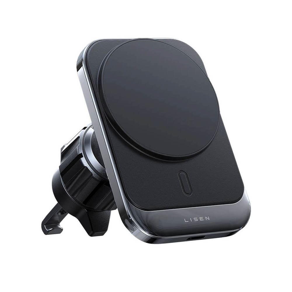 Поставка за радиаторa на кола с безжично зареждане за iPhone с Magsafe - Lisen Magnetic Wireless Air Vent Car Mount 15W (черен)