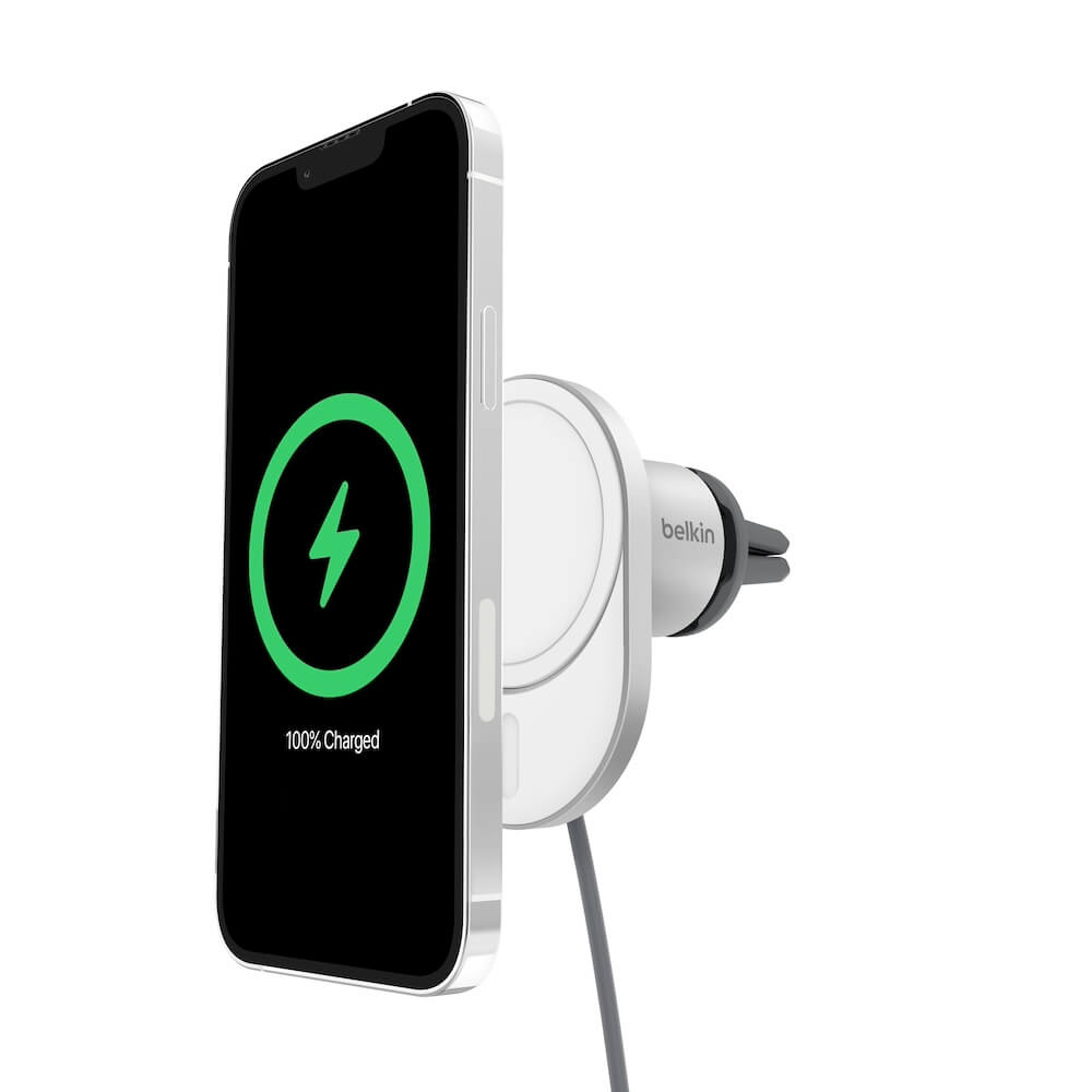 Поставка за радиатора на кола с MagSafe безжично зареждане за iPhone с Magsafe - Belkin BoostCharge Pro Qi2 Magnetic Wireless Car Charger 15W (сребрист)