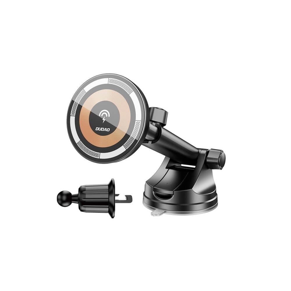 Поставка за таблото, стъклото или радиатора на кола с безжично зареждане за iPhone с Magsafe - Dudao MagSafe Dashboard And Vent Car Mount 15W (черен)