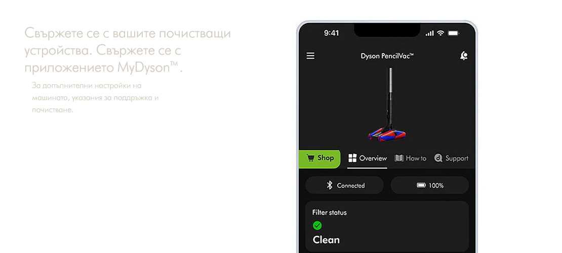 Свържете се с вашите почистващи устройства. Свържете се с приложението MyDyson.