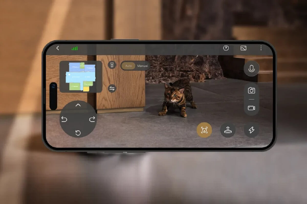 Активирайте режима за намиране на домашни любимци с едно натискане на бутон. Роботизираната прахосмукачка самостоятелно търси домашния ви любимец и прави снимка, когато го намери, всичко това без да е необходимо ръчно управление.