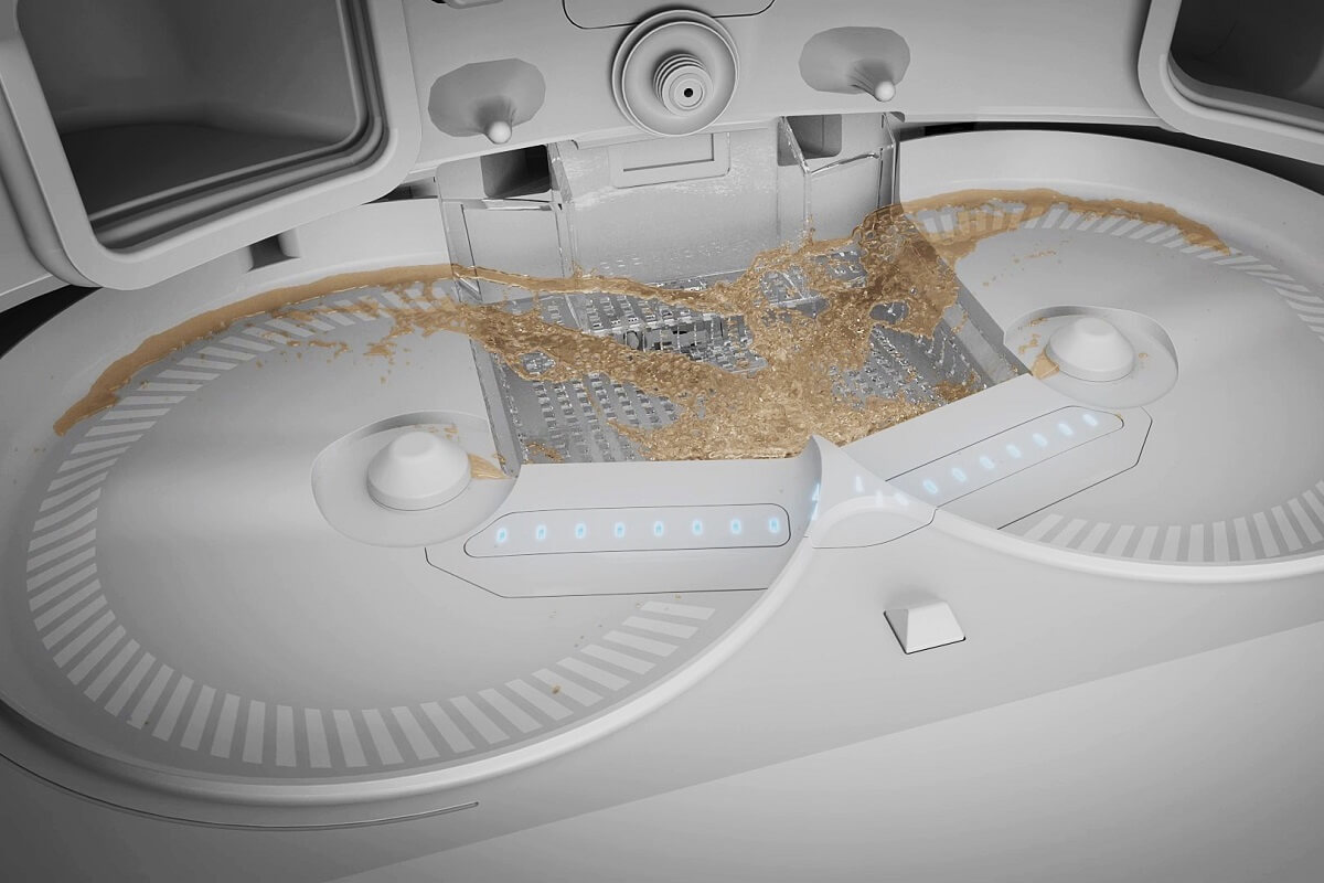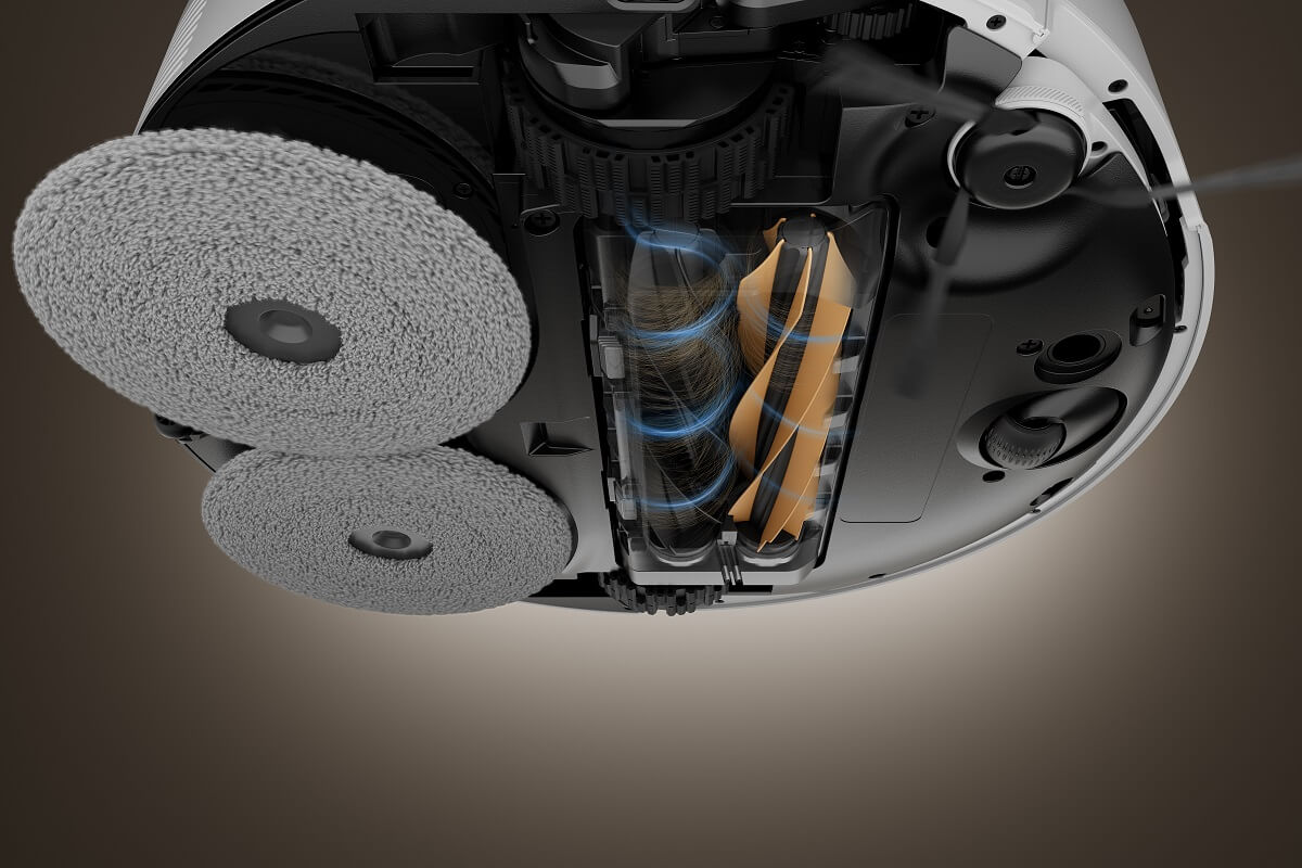 По време на почистване с моп, TripleUp Tech повдига страничните и основните четки съответно до 10 мм и 5 мм, което позволява на моповете да се спуснат и да се справят с упорити петна като соев сос и кафе. Това поддържа четките сухи и предотвратява неприятните миризми в контейнера за прах, като гарантира, че вашата прахосмукачка работи най-добре и остава свежа.