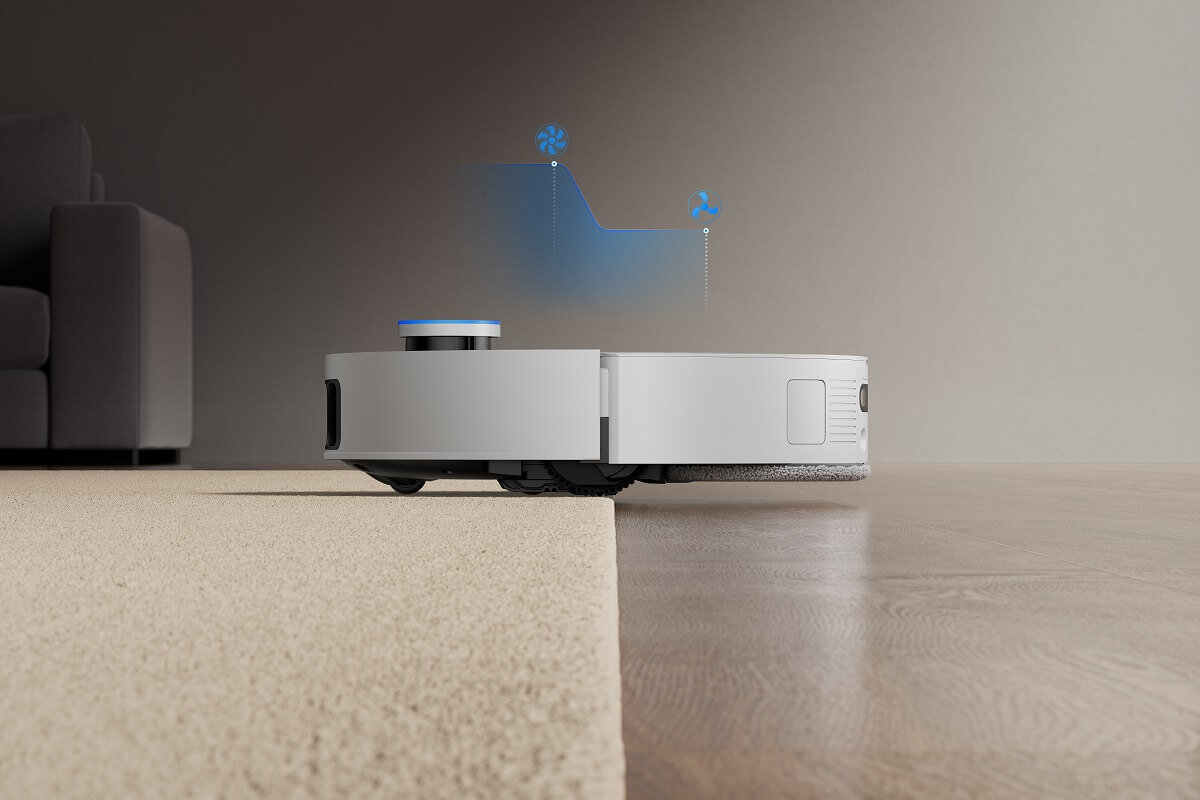 Dreame X50 Ultra повдига моповете до 10,5 мм за килими с къс косъм в хола, за да предотврати влага и да подобри ефективността на почистване. Той усилва всмукателната мощност и извършва интензивно почистване, като почиства два пъти с прахосмукачка с намалена скорост за цялостно освежаване на килима.