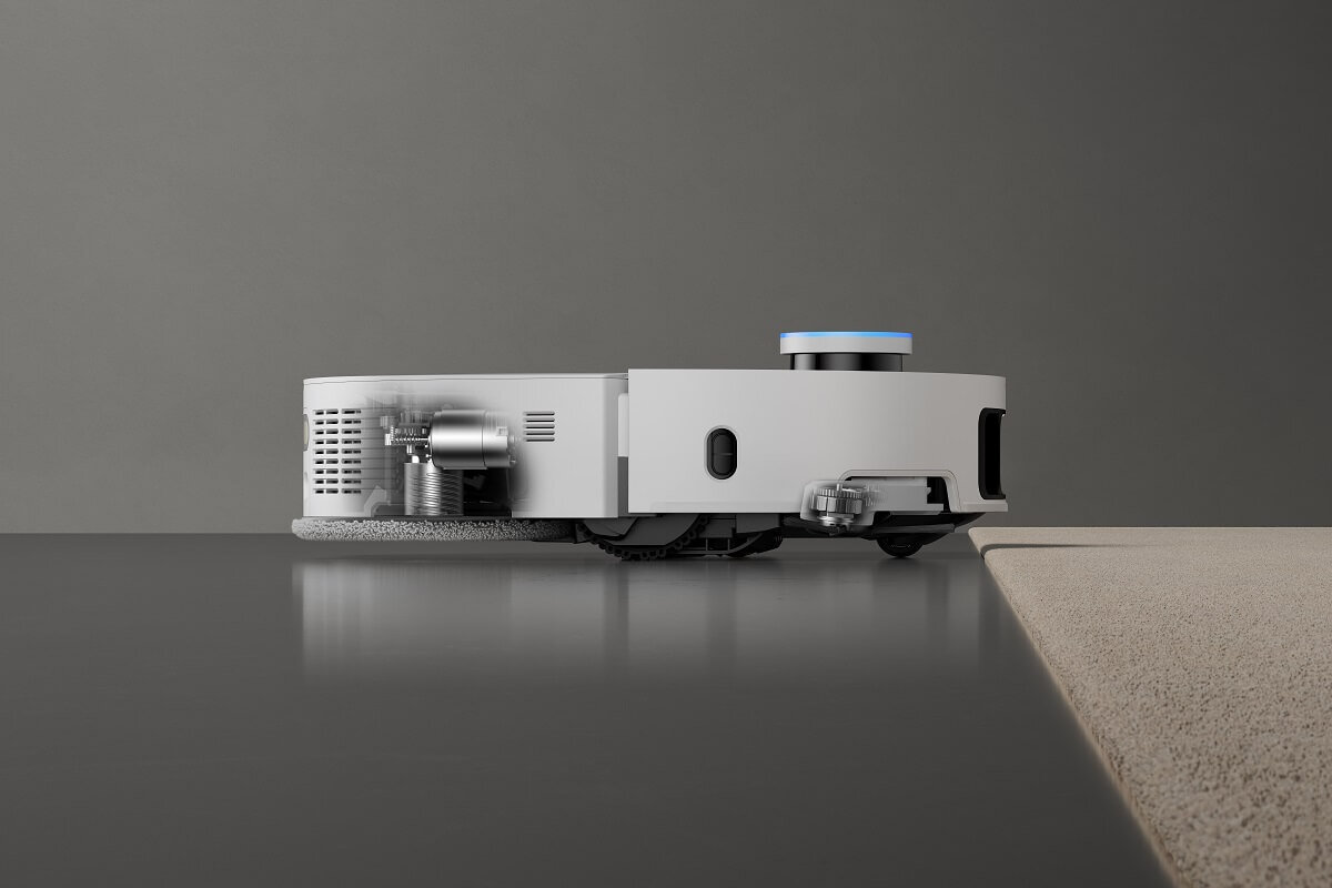 При почистване с Dreame X50 Ultra, TripleUp Tech спуска страничните и основните четки, за да улови прах и косми от домашни любимци, докато моповете се повдигат с 10,5 мм, за да поддържат килимите сухи и невредими. Тази настройка осигурява силна всмукателна мощност и предпазва килимите от потенциално увреждане от влага.