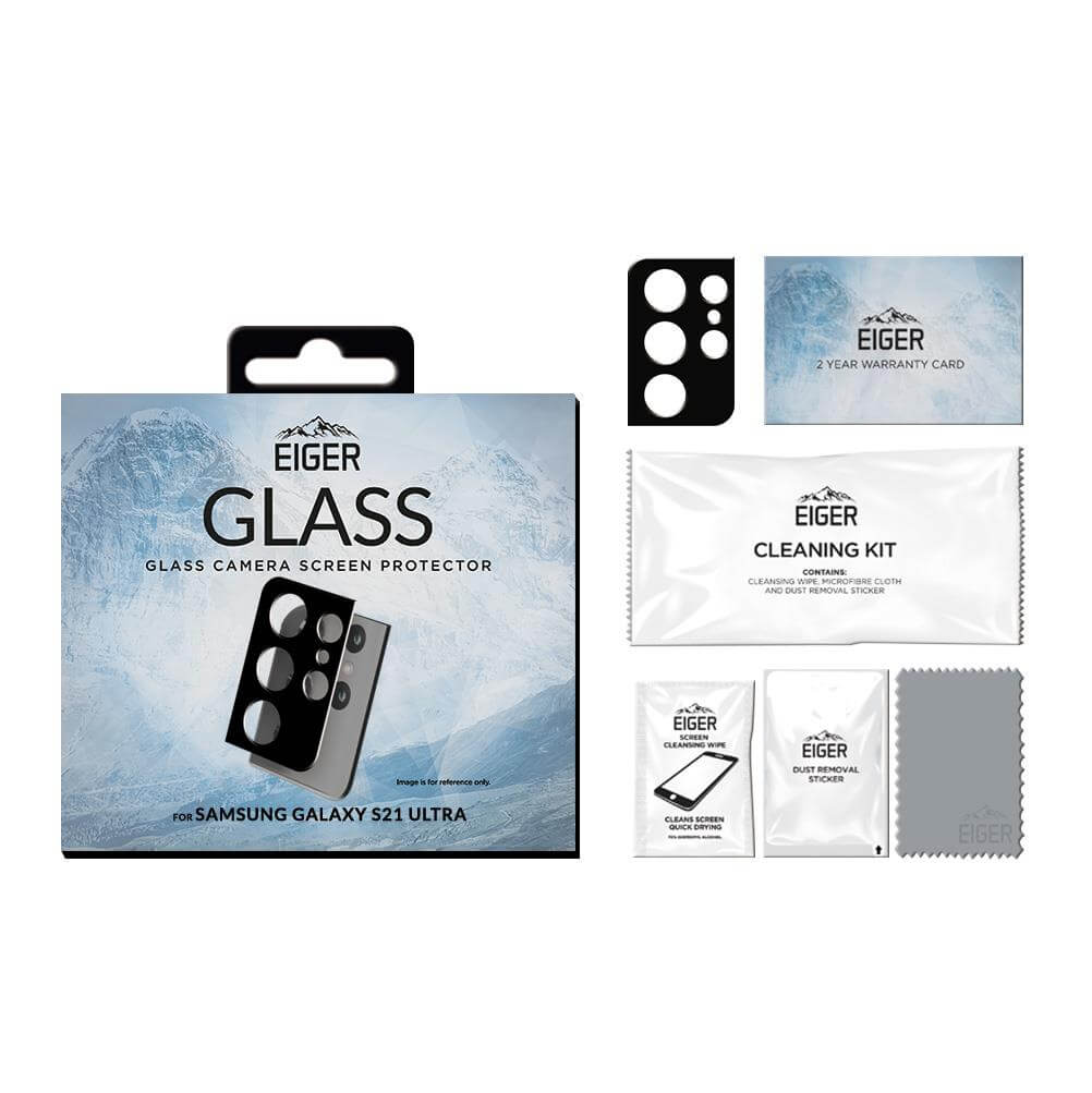 Дебелина: 0.33 мм - 1 x Eiger 2.5D GLASS Camera Lens Screen Protector - 1 x мокра кърпичка - 1 x микрофибърна кърпичка - 1 x антистатичен стикер - 1 x инструкции за поставяне