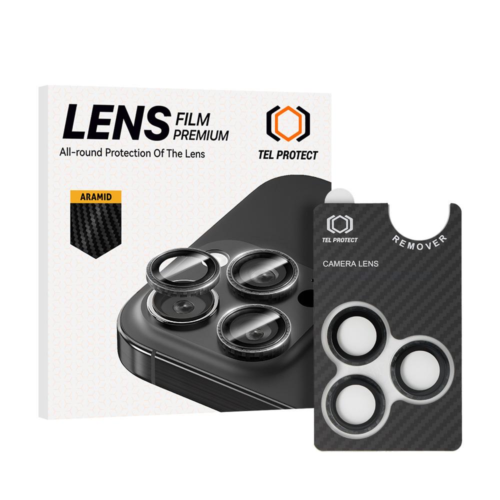 Предпазни стъклени лещи за камерата на Samsung Galaxy S25 Ultra - Tel Protect 3D Aramid Tempered Glass Camera Lens Protector (карбон)