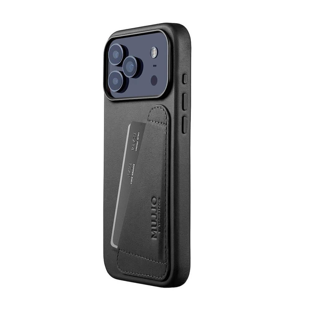 Премиум кожен (естествена кожа) кейс с MagSafe за iPhone 17 Pro Max - Mujjo Full Leather MagSafe Wallet Case (черен)