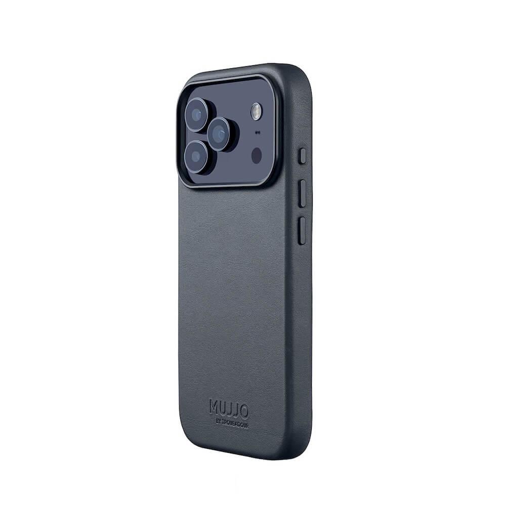 Премиум кожен (естествена кожа) кейс с MagSafe за iPhone 17 Pro - Mujjo Full Leather MagSafe Case (тъмносин)