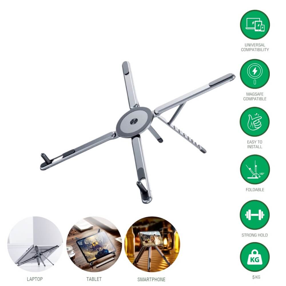 Преносима алуминиева сгъваема поставка за за iPhone с Magsafe и MacBook и лаптопи до 17.3 инча - 4smarts Multi-Stand MsgSafe Portable Desk Stand (тъмносив)