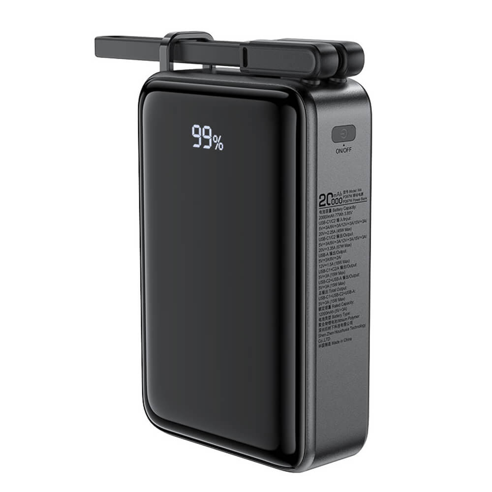 Преносима външна батерия с 2xUSB-C и 1xUSB-A изходи и технология за бързо зареждане - Acefast M4 Fast Charge Power Bank PD 67W 20000 mAh (черен)