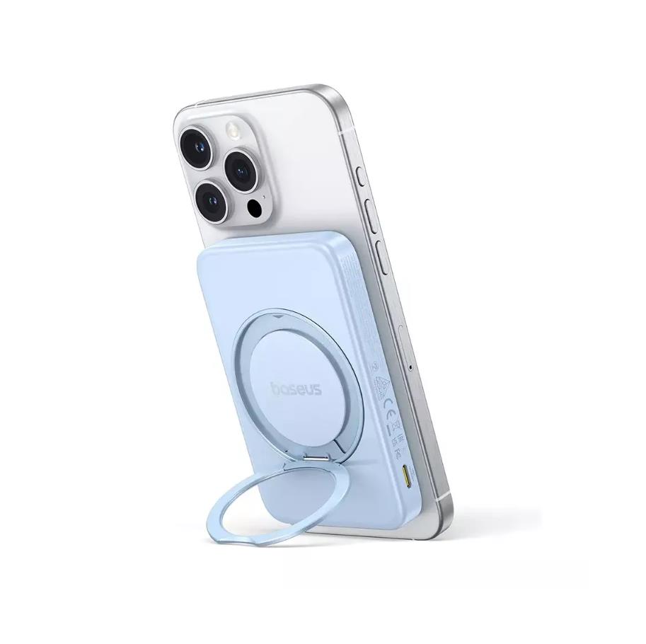 Преносима външна батерия с USB-C порт и безжично зареждане с MagSafe - Baseus PicoGo Qi2 Magnetic Wireless Charging Power Bank 5000 mAh 20W (син)