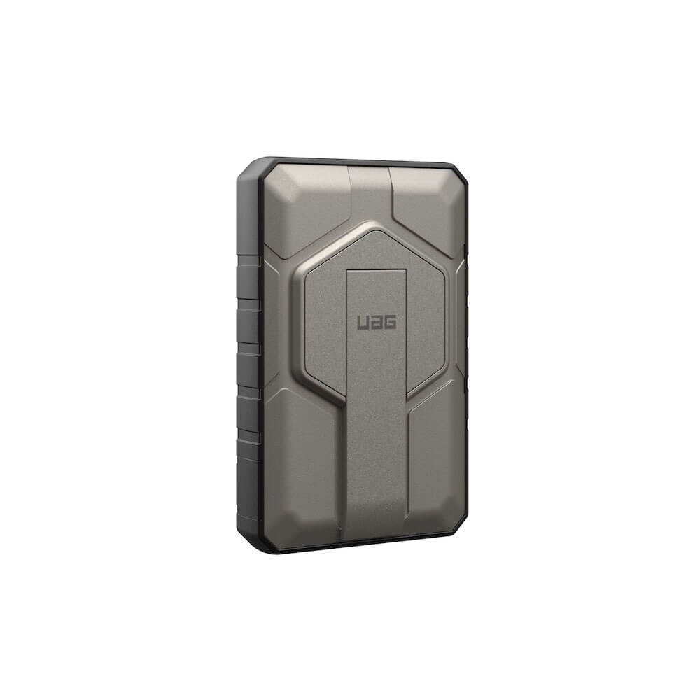 Преносима външна батерия с USB-C порт, USB-A изход, безжично зареждане с MagSafe и пръстен против изпускане - Urban Armor Gear Rugged Magnetic Wireless Power Bank 10000 mAh 20W (сив)