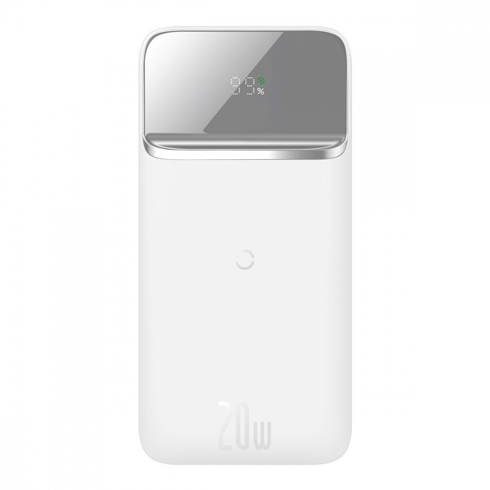 Преносима външна батерия с USB-C порт, USB-A изход и безжично зареждане с MagSafe - Baseus Magnetic Wireless Quick Charging Power Bank 10000 mAh (PPMT-02) (бял)