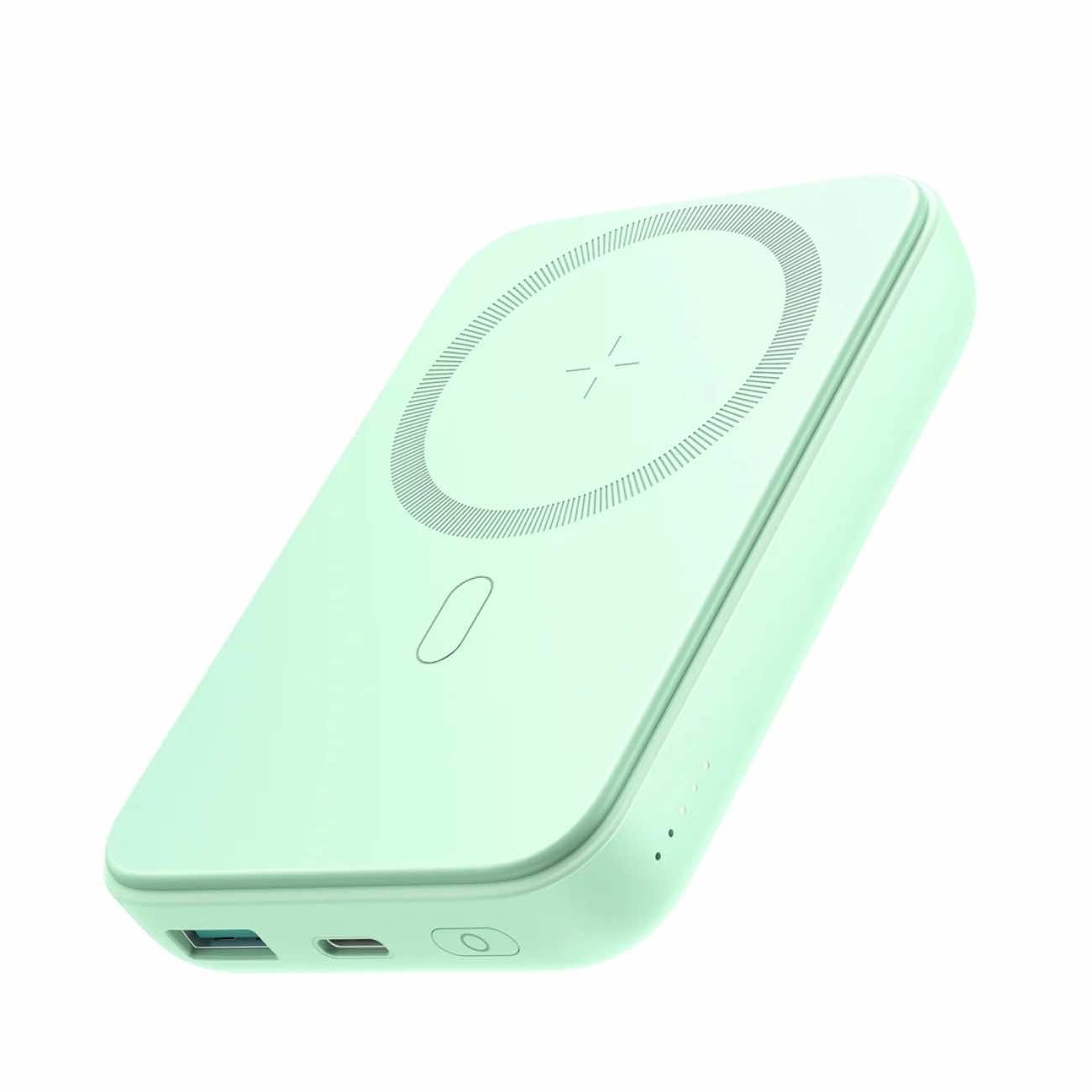 Преносима външна батерия с USB-C порт, USB-A изход и безжично зареждане с MagSafe - Joyroom Mini Magnetic Wireless Quick Charging Power Bank 10000 mAh 20W (зелен)